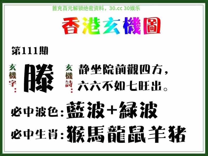 111期:╠绝杀三肖╣※羊猴蛇※开:马12准